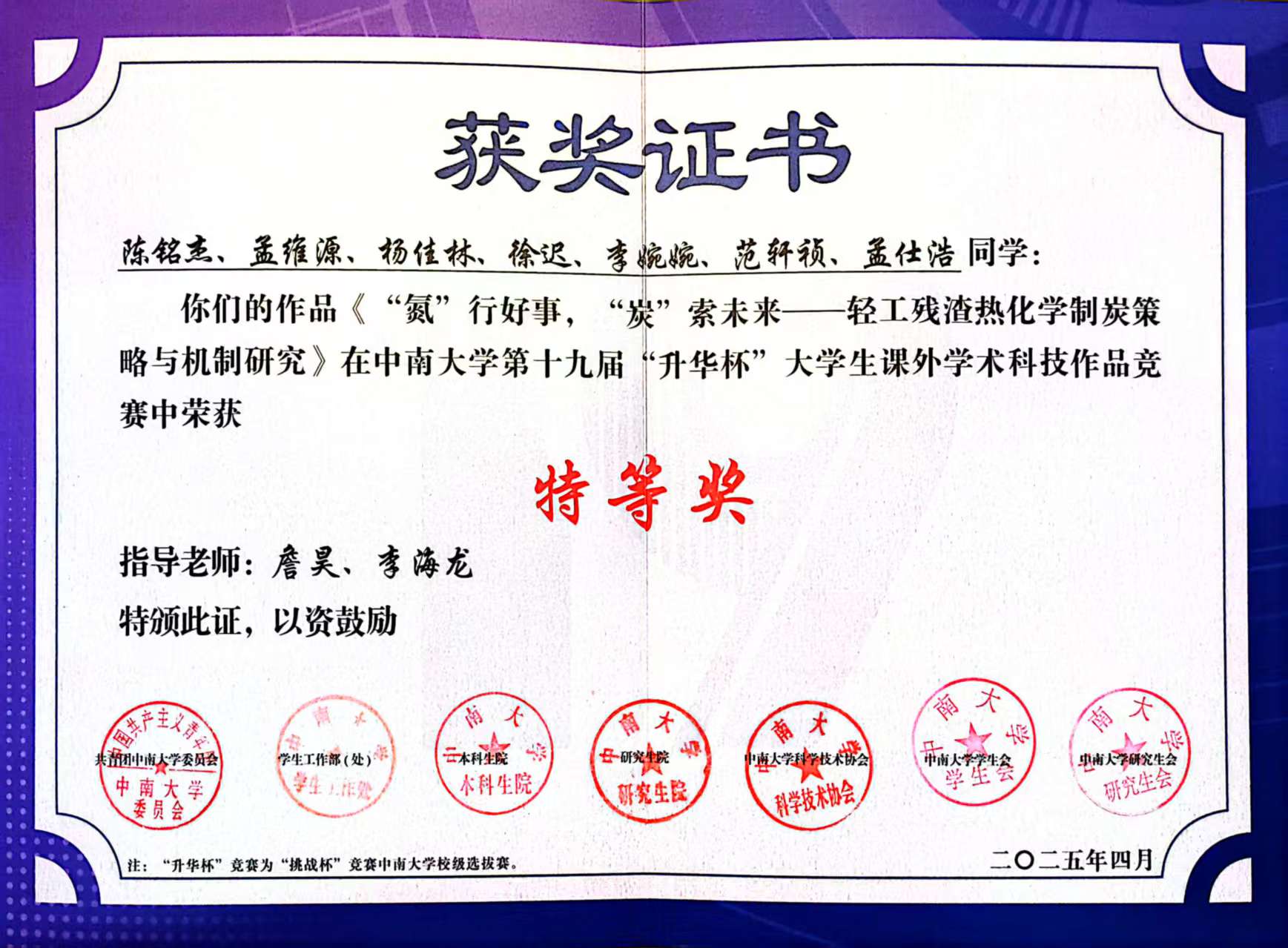 2025.04.20 第十九届中南大学升华杯特等奖