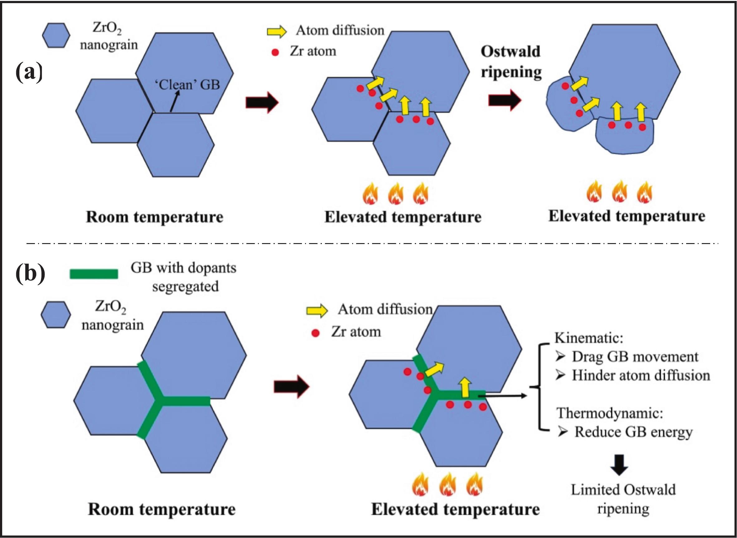 Inhibiting coarsening of yttrium-stabilized zirconia nanograins via dopant segregation at grain boundaries