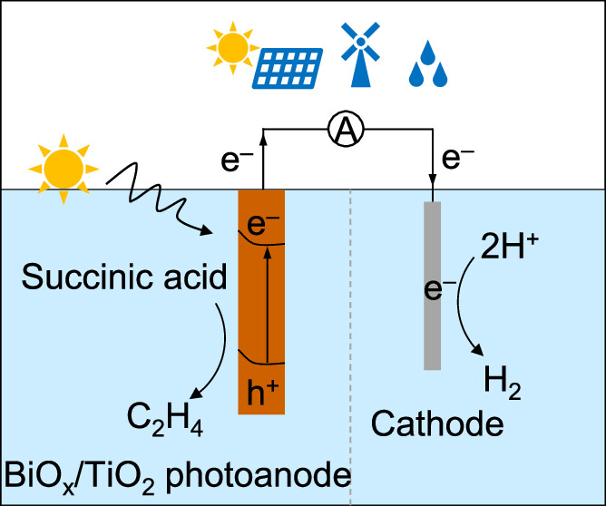 Photoelectrocatalytic Valorization of Biomass-Derived Succinic Acid into Ethylene Coupled with Hydrogen Production over an Ultrathin BiOx-Covered TiO2